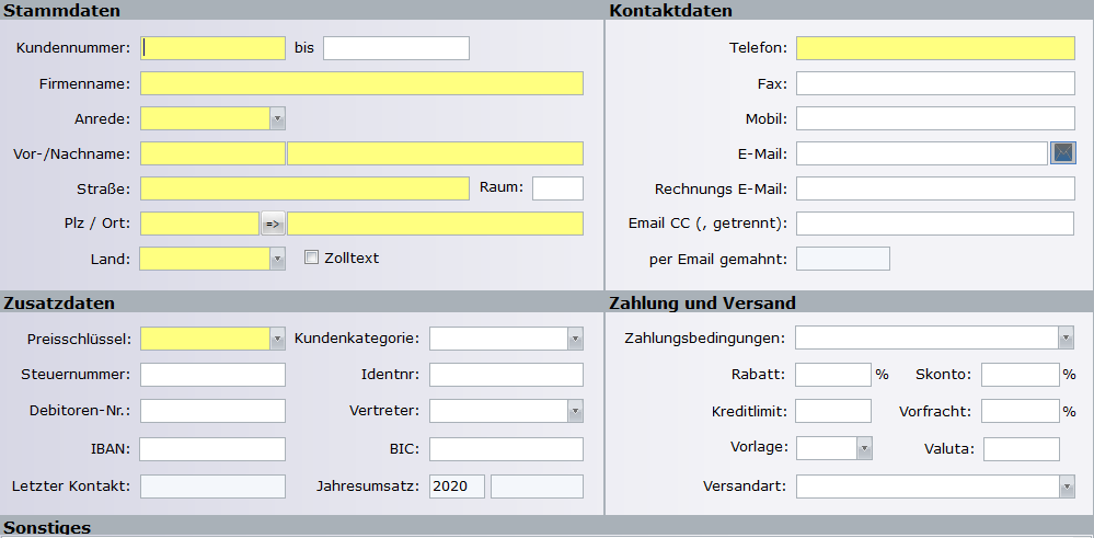 - Geben Sie einen Suchbegriff in das zugehörige Datenfeld ein, z.B. die Kundennummer „121512“ in das Datenfeld Kundennummer.